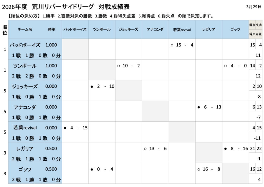 - 前月の第2土曜日に次月の試合日程を発表します。